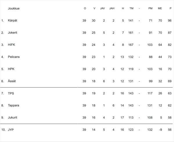 – Jatkoajalla meillä oli avotontteja napata kaksi pistettä, mutta tällä kertaa JYP vei lisäpisteen. JYP oli paras joukkue mitä vastaan olemme tällä kaudella pelanneet, pelasivat todella hyvää jääkiekkoa, Marjeta kehui.