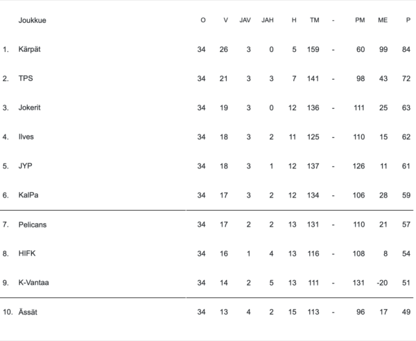 IFK jatkaa B-nuorten SM-sarjassa sijalla kahdeksan ja suoraan puolivälieräpaikkaan, kuudenteen sijaan, joukkueella on matkaa nyt viisi pistettä.