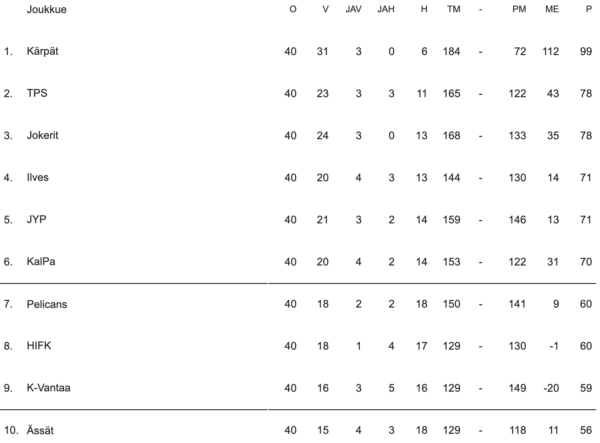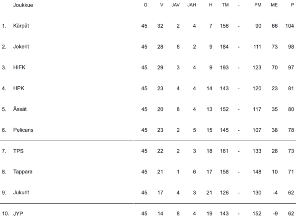 – Tavoitteeksi asetettiin, että pelivalmius nostetaan korkealle tasolle ja luotetaan kovaan työntekoon, joka parhaimmillaan lukeutuu joukkueemme vahvuuksiin. Jätkät toteuttivat suunnitelmaa hyvin ja pystyttiin pelaamaan ehjä 60 minuuttia, Töykkälä kiitteli miehistöään.
