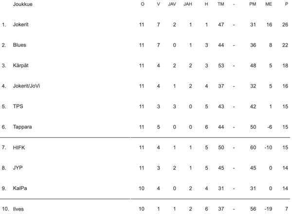 IFK on sarjassa kahdeksantena, 10 pisteen päässä suorasta paikasta kevään puolivälieriin. Joukkue pelaa seuraavan kerran vasta 22. helmikuuta.