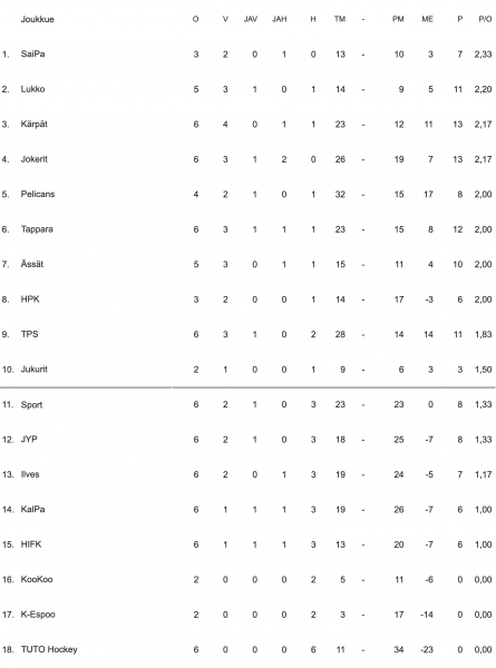 Jääkiekkoliiton alaisiin sarjoihin tuli merkittävä muutos tällä viikolla. Liitto linjasi, että sarjataulukon paremmuusjärjestys määräytyy ottelukohtaisen pistekeskiarvon mukaan kaikissa liiton alaisissa sarjoissa. Liigaa muutos ei koske.