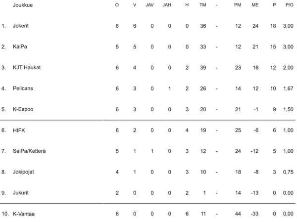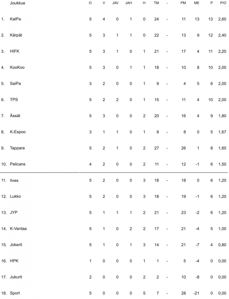 – Kauden alku on osoittanut, että sarjatilannetta on helpompi seurata reaaliajassa, kun siirryimme pistekeskiarvoon. Pelejä on jo tässä vaiheessa jouduttu osin siirtämään ja osin jättämään pelaamatta, Jääkiekkoliiton kilpailupäällikkö Pirkka Antila taustoitti päätöstä Ylelle.