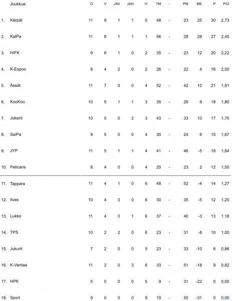 Kollit: ke 14.10. klo 19.00 Ilves-Kollit, pe 16.10. klo 13.00 Lukko-Kollit, la 17.10. klo 16.00 Kollit-KalPa