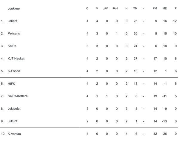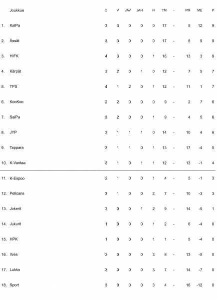 Kollit: la 19.9. klo 15.00 Jokerit-Kollit, su 20.9. klo 16.00 Kollit-Jokerit