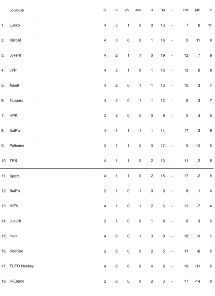 U16: pe 18.9. klo 17.20 KJT Haukat-HIFK, la 19.9. klo 14.50 HIFK-Jokerit