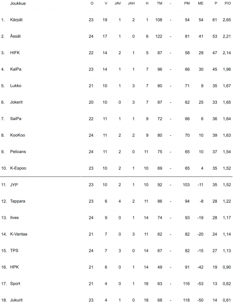 HIFK keräsi alkusarjan kolmanneksi parhaan pistekeskiarvon (2,14) pelaamassaan 22 ottelussa.