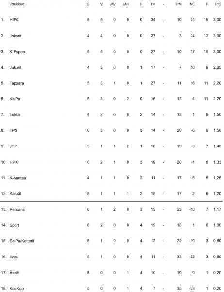 IFK:n vahva alkukausi ylemmässä U18 SM-alkusarjassa sai jatkoa, kun Joni Petrellin miehistö venytti voittoputkensa jo viiden ottelun mittaiseksi. IFK ei ole kärsinyt viidessä pelaamassaan ottelussa yhtään pistemenetystä ja maalinteossa joukkue on onnistunut yhteensä 34 kertaa, kun taas omiin on mennyt kymmenen vastustajan laukausta. Lauantaina IFK kukisti kotonaan SaiPa/Ketterän maalein 4-2. Hannes Tiainen vei kotijoukkueen 1-0-johtoon avauserässä ja sama pelaaja oli asialla myös 2-0-maalissa toisen erän alkupuolella.