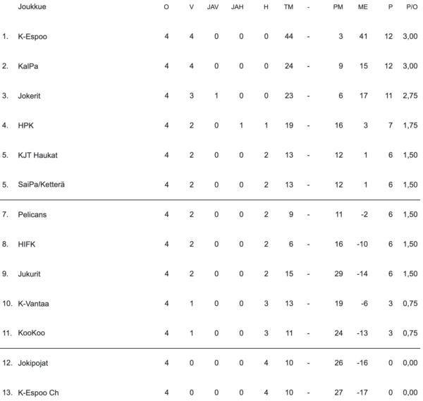 – Tekeminen ei ollut riittävällä tasolla ja alivoimapeli oli heikkoa. Hyvä asia oli, että kolme kertaa noustiin tappioasemasta rinnalle. Yksi piste, ollaan siitä tyytyväisiä, koska enempää ei ansaittu. Levätään paremmin, harjoitellaan laadukkaammin ja kohti ensi viikonlopun kahta ottelua, Töykkälä kommentoi viikon ainoan ottelun jälkeen.