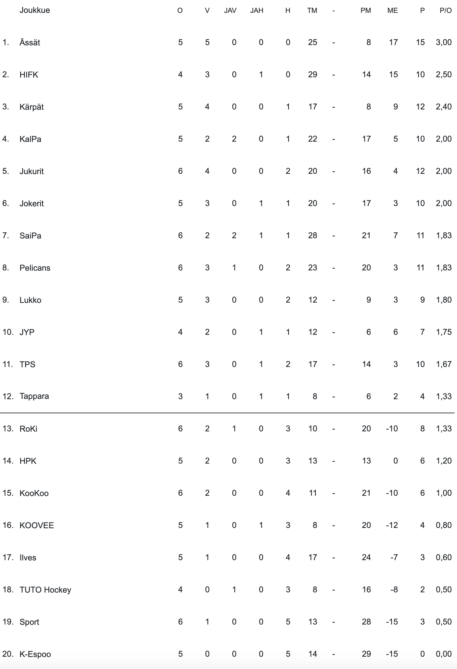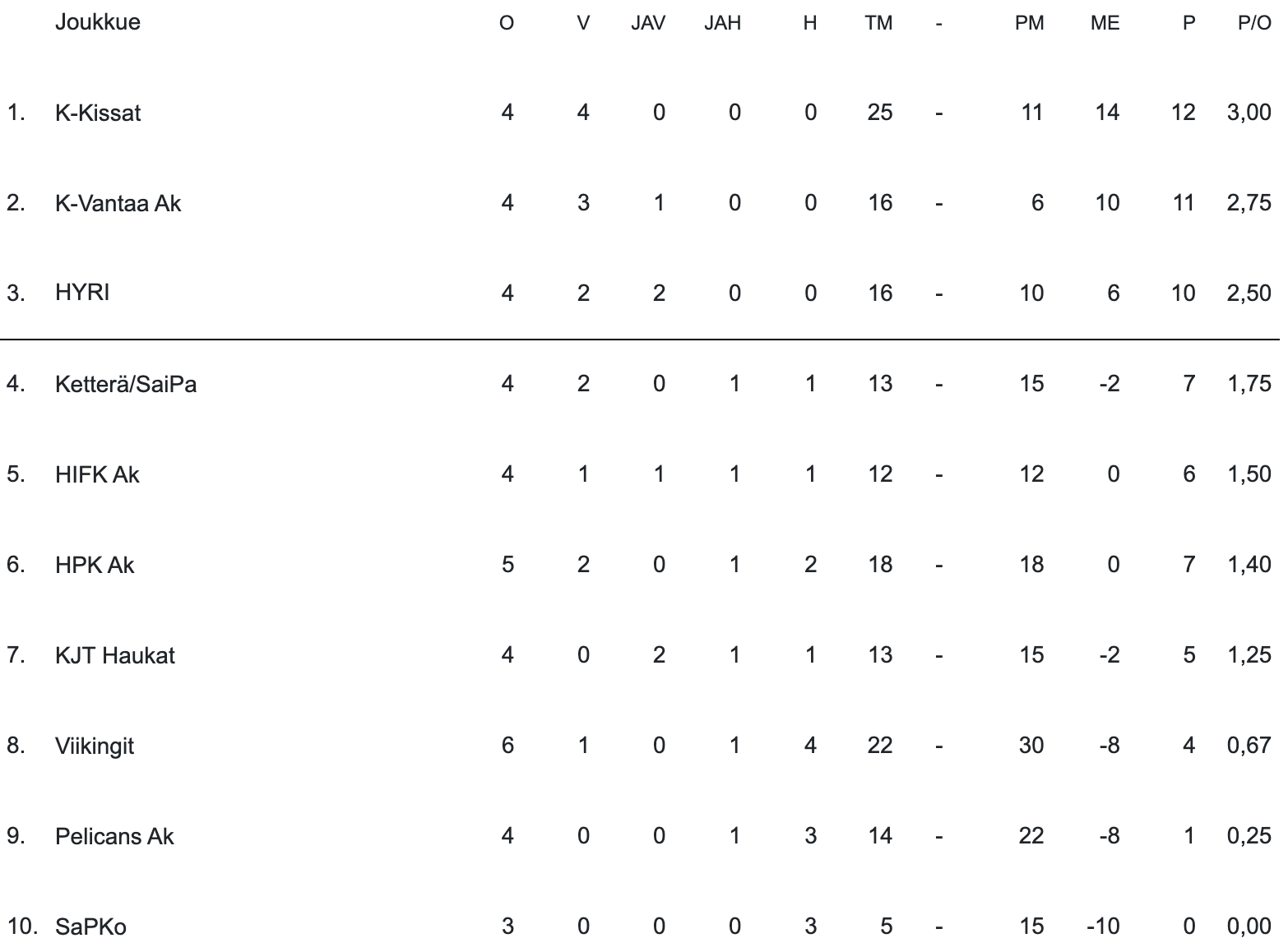 – Tekeminen ei ollut riittävällä tasolla ja alivoimapeli oli heikkoa. Hyvä asia oli, että kolme kertaa noustiin tappioasemasta rinnalle. Yksi piste, ollaan siitä tyytyväisiä, koska enempää ei ansaittu. Levätään paremmin, harjoitellaan laadukkaammin ja kohti ensi viikonlopun kahta ottelua, Töykkälä kommentoi viikon ainoan ottelun jälkeen.