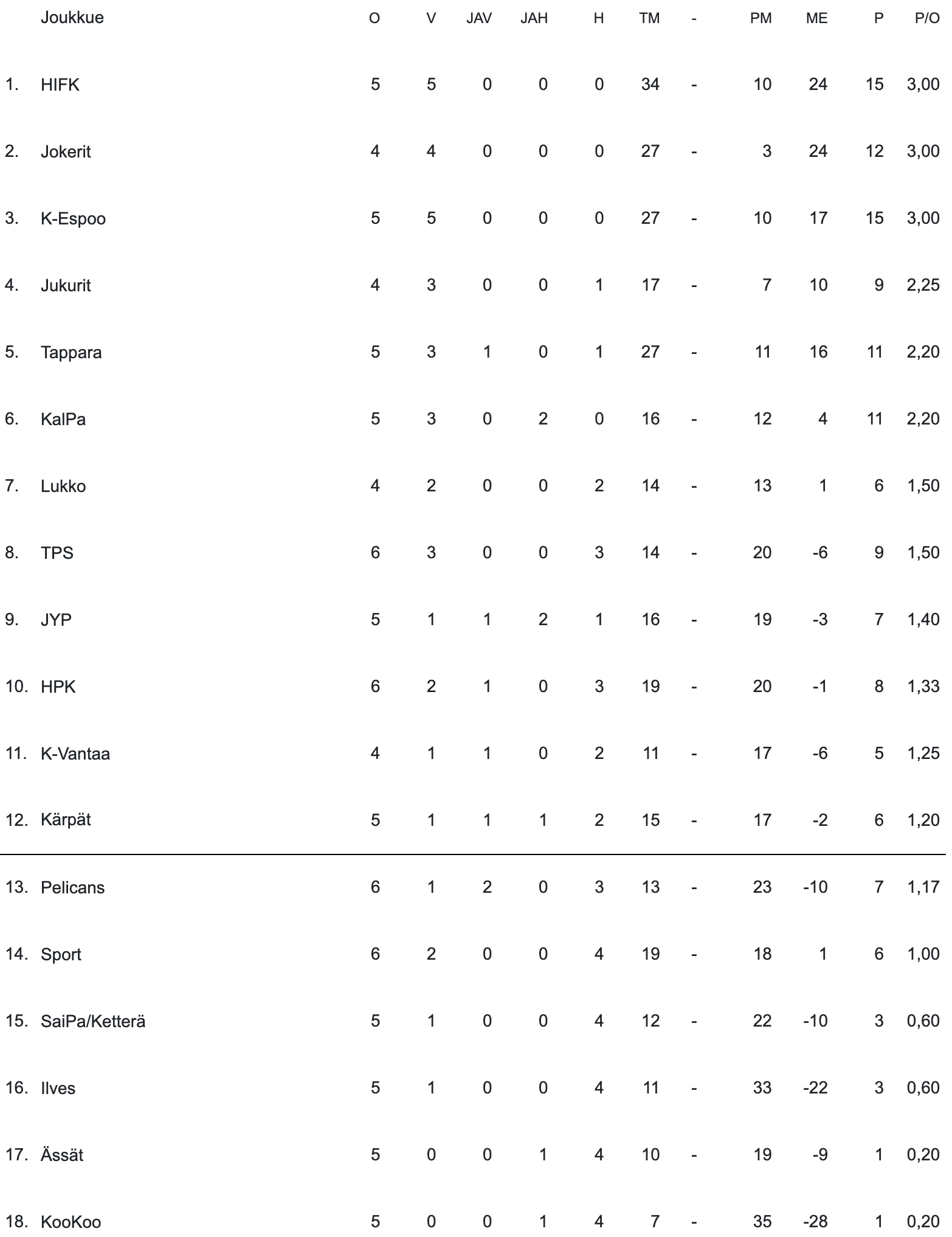 HIFK:n U18-joukkue on pelannut tällä kaudella harjoitusottelut mukaan laskettuna yhteensä 14 ottelua. Voittoprosentti näistä otteluista on täysi sata.