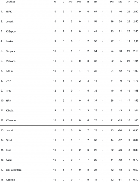 Kollit: pe 15.10. klo 14:40 RoKi – HIFK, la 16.10. klo 12:30 Kärpät – HIFK