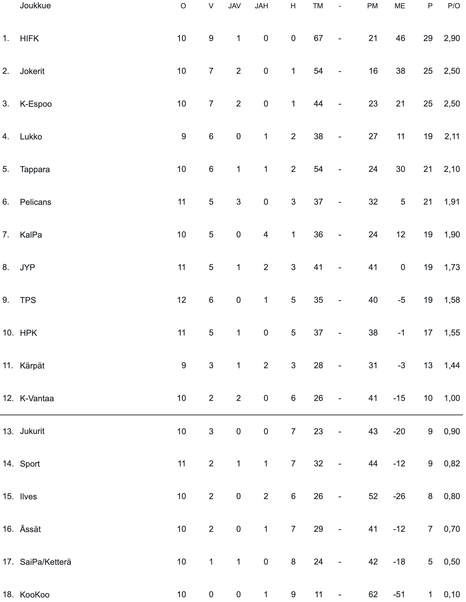 Kollien Aleksanteri Kaskimäki (9+7=16) ja Viljam Sandvik (5+11=16) johtavat sarjan pistepörssiä kymmenen kierroksen jälkeen.