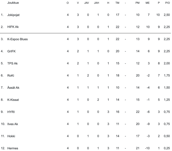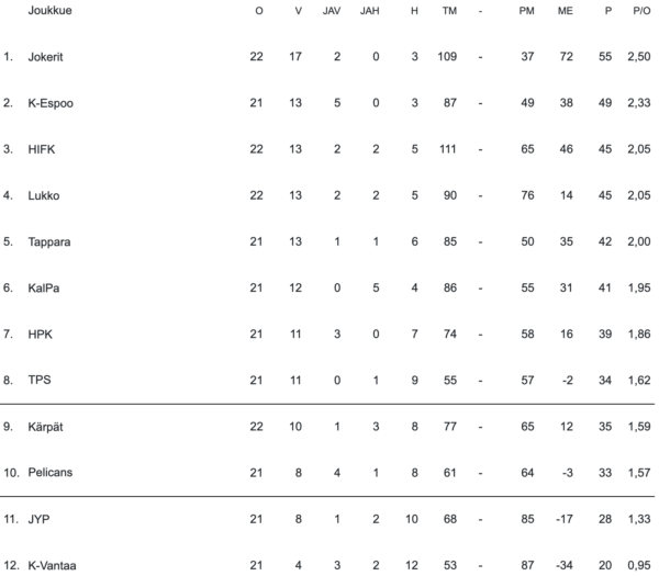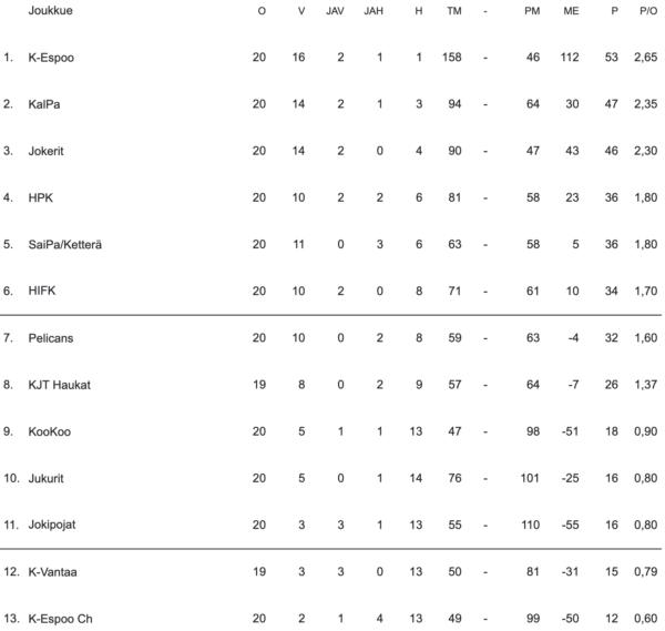 – Lauantain peli Karhu-Kissoja vastaan oli tasaista vääntöä. Loistavan maalivahtipelin kautta käytimme maalipaikat vastustajaa paremmin hyväksi, päävalmentaja Petri Kokko kertoo.