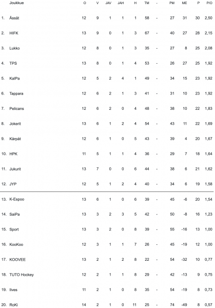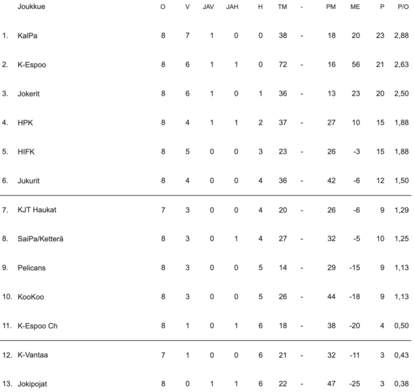 – Oltiin RoKia vastaan paljon kiekon kanssa tekemisissä ja sitä kautta hallittiin ottelua. Toisen erän viimeinen 10 minuuttia oli heikkoa tekemistä meiltä. 50 minuuttia hyvää tekemistä takasivat ansaitut kolme pistettä Rovaniemeltä, päävalmentaja Joni Töykkälä pohti.