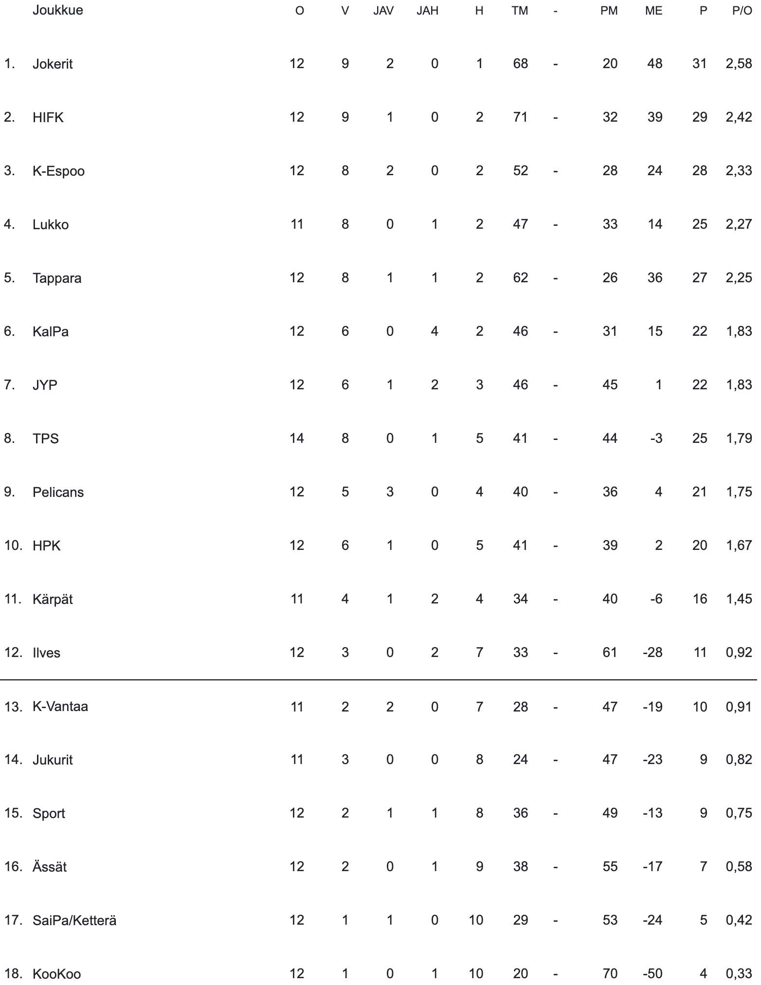 – Oltiin RoKia vastaan paljon kiekon kanssa tekemisissä ja sitä kautta hallittiin ottelua. Toisen erän viimeinen 10 minuuttia oli heikkoa tekemistä meiltä. 50 minuuttia hyvää tekemistä takasivat ansaitut kolme pistettä Rovaniemeltä, päävalmentaja Joni Töykkälä pohti.
