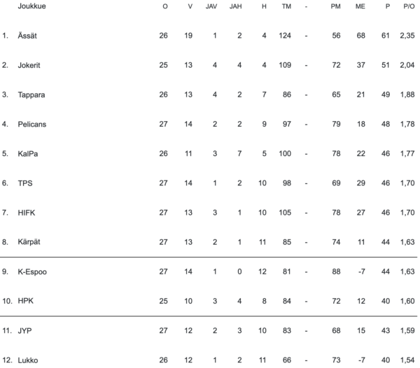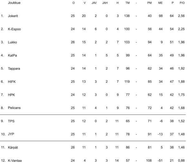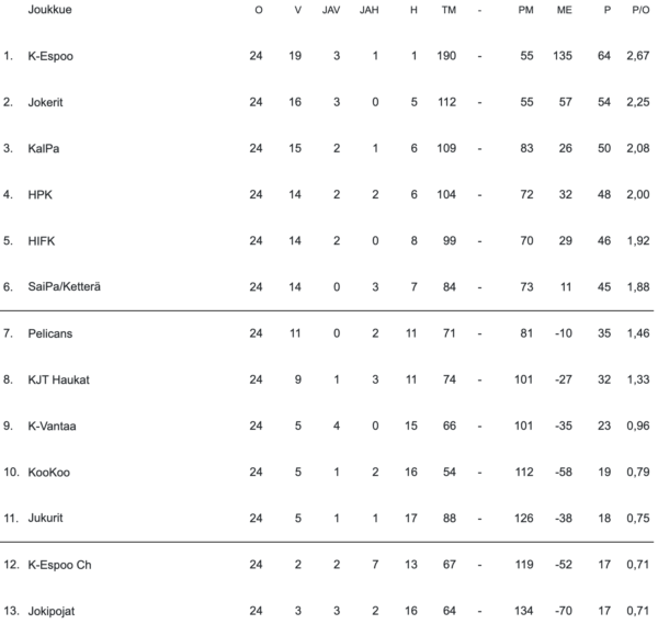 – Jyväskyläss taas tasainen ottelu, jossa mikään lopputulos ei olisi ollut vääryys. Erittäin kivulias tapa hävitä ottelu 30 sekuntia ennen loppua. Tässä koetellaan kaikkia ja tekeminen ei ole sillä tasolla, että ansaittaisiin enemmän, mutta tämä on kaikille hyvä mahdollisuus yhdessä laittaa hommia kuntoon ja hitsaantua enemmän yhteen. Mihin se johtaa – sen kertoo vasta tulevaisuus.