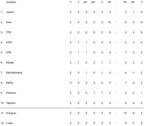 Avausviikonloppuna joukkue otti täydet kuusi sarjapistettä ja mätti peräti 12 maalia.
