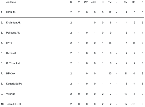 13:20 | HIFK Ak | – | Pelicans Ak | |