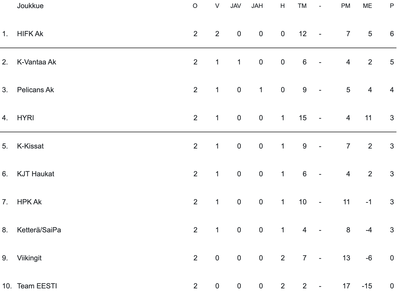 13:20 | HIFK Ak | – | Pelicans Ak | |