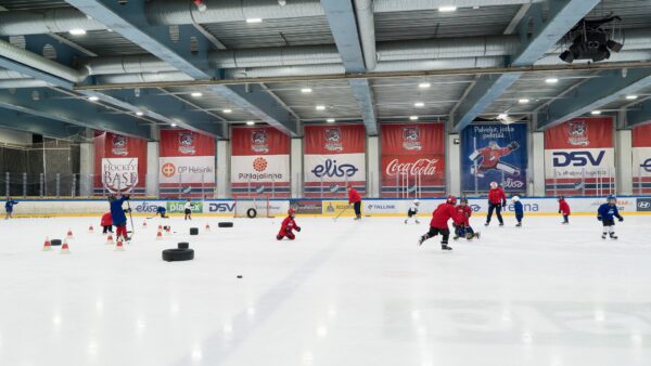 Kiekkokoulun vakiovuoro on sunnuntaisin Helsingin Jäähallin harjoitushallissa, Elisa Areenalla.