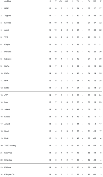 12:45 | Ketterä/SaiPa | – | HIFK Ak |