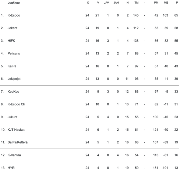 Yksi peli ja siitä tarjolla olleet pisteet jäi meille eli hieno suoritus jengiltä. Seuraava viikonvaihde miekkaillaan vielä ennen joulutaukoa, joten hyvillä mielin tulevaa kohti, joukkueen päävalmentaja Timo Kuuluvainen kertoo.