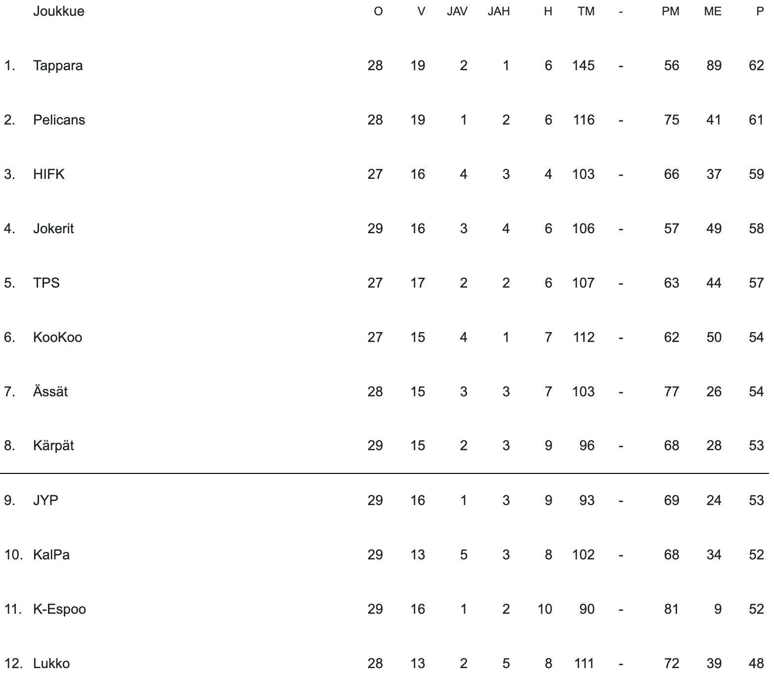 15:00 | SaiPa/Ketterä | – | HIFK Ak |