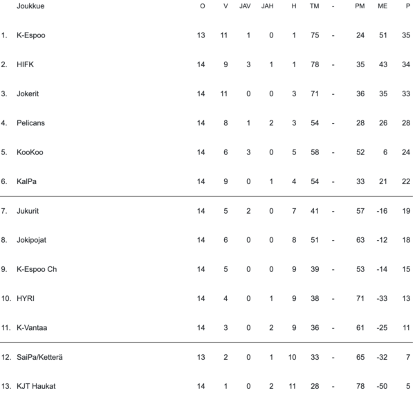 – Hyvä viikko ja kundit osoittivat hyvää luonnetta. Olimme tiukoilla Porisssa keskiviikkona, mutta oltiin sitkeitä. Perjantain kärkipelissä alku oli meiltä erittäin huono. Ekalla erätauolla pojat päättivät, että pitää parantaa ja näin myös kävi. Kova suoritus pojilta, päävalmentaja Joni Töykkälä iloitsee.