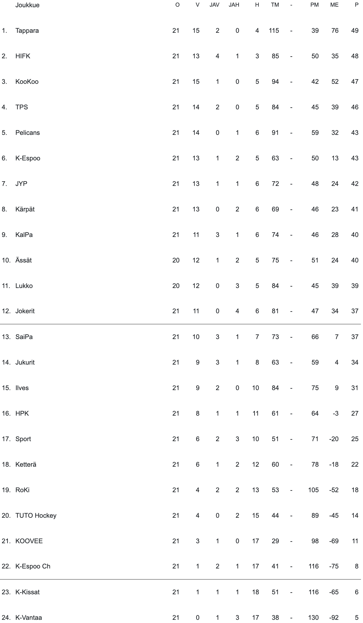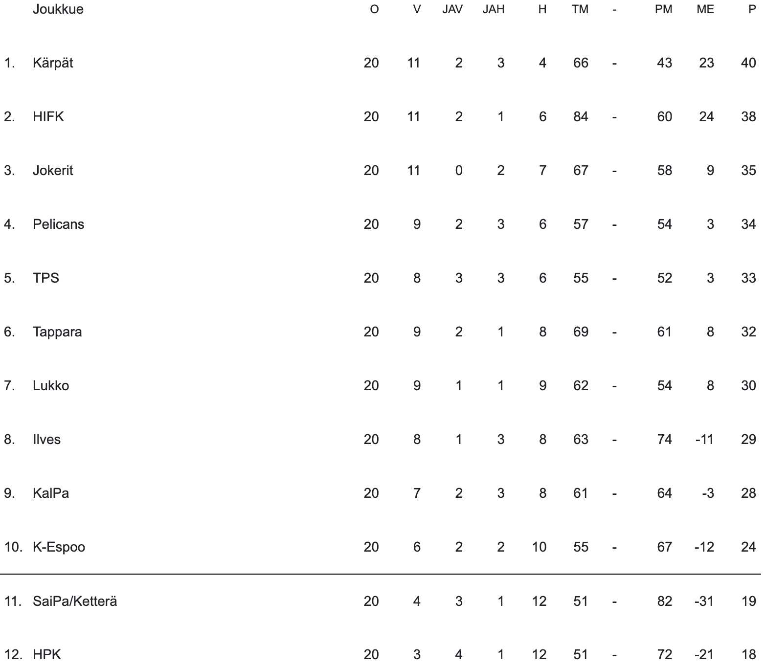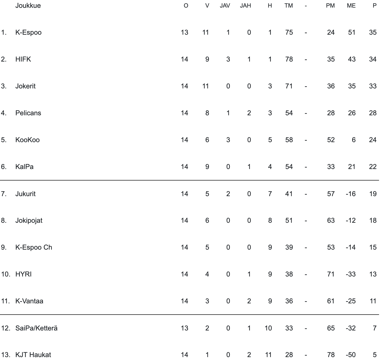 15:00 | SaiPa/Ketterä | – | HIFK |