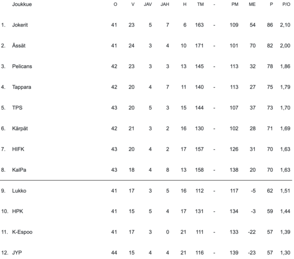 – Hämeenlinnassa tultiin kaksi kertaa kahden maalin takaa tasoihin ja lopulta voittoon. Iso kiitos jätkille uskosta ja taistelusta loppuun asti. Hieno runkosarjan lopetus. Nyt kohti pudotuspelejä!