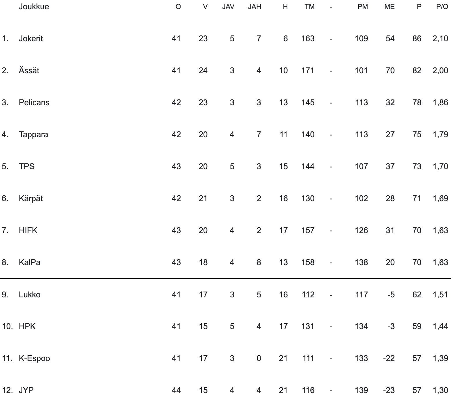 – Hämeenlinnassa tultiin kaksi kertaa kahden maalin takaa tasoihin ja lopulta voittoon. Iso kiitos jätkille uskosta ja taistelusta loppuun asti. Hieno runkosarjan lopetus. Nyt kohti pudotuspelejä!