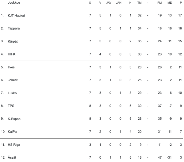 HIFK:n alle 18-vuotiaat pelasivat niin ikään kahdesti viime viikolla. Kotiotteluista pisteitä kertyi neljä ja johto sarjan kärjessä kasvoi. Sarjapelit jatkuvat tammikuussa loppuvuoden maajoukkueturnauksista johtuen.