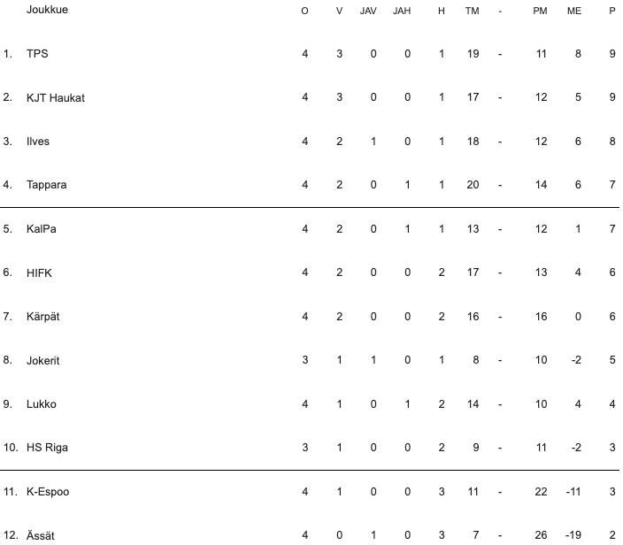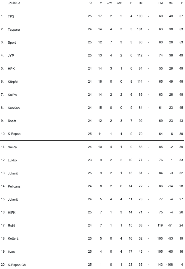 13:20 | TPS | – | HIFK | |