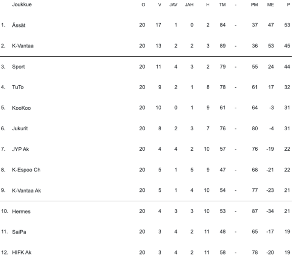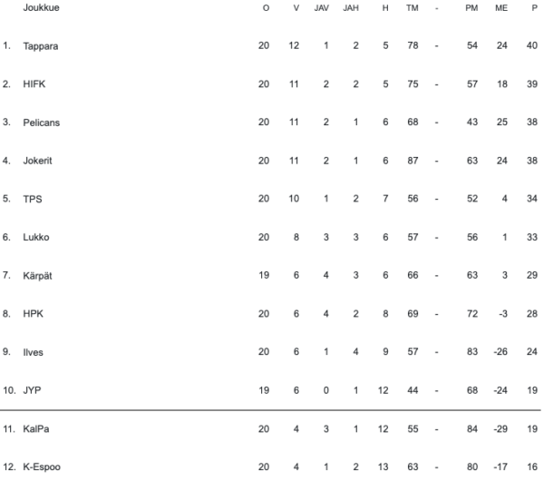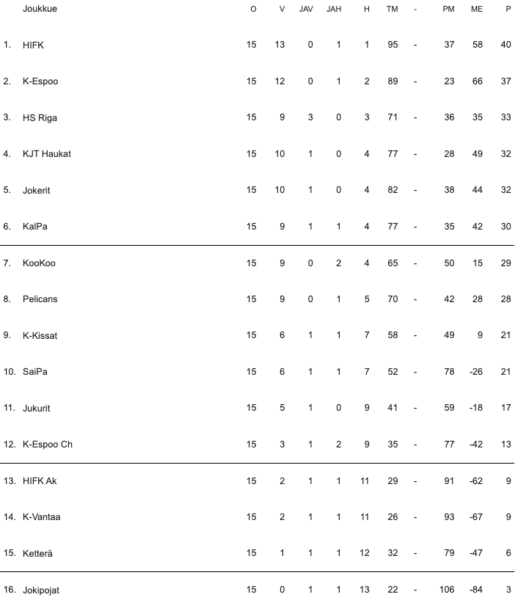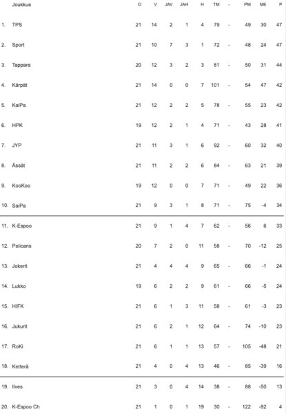 – Nyt pieni tauko peleistä. Saadaan testit tehtyä ja otettua vähän happeakin. Sitten pari vikaa alkusarjan matsia KalPaa ja JYPiä vastaan, joissa tottakai lähdemme tekemään parhaamme ja sitten nähdään riittääkö se piikkipaikalle.