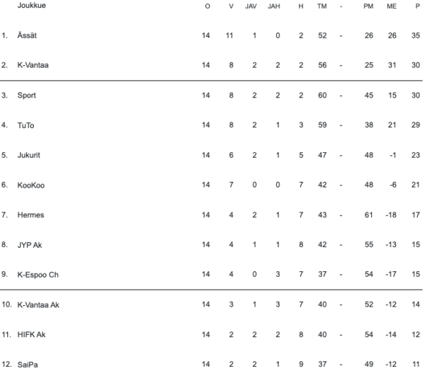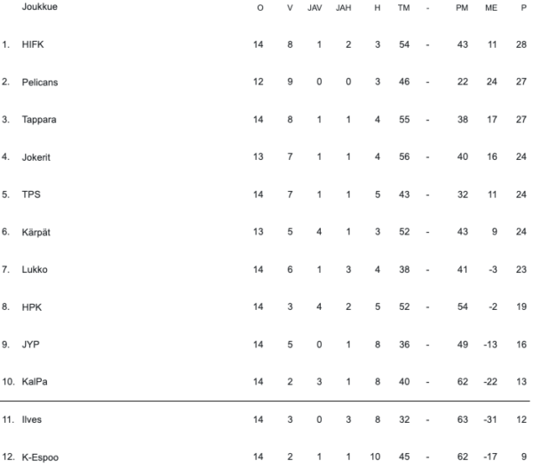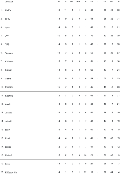 – Joukkueessa on työläs ja positiivinen ilmapiiri. Sitä pyrimme ylläpitämään joka viikko tästä eteenpäinkin. Ensi viikolla vieraspelit Tampereella ja Lahdessa, joissa pääsemme taas mittaamaan tasoamme.