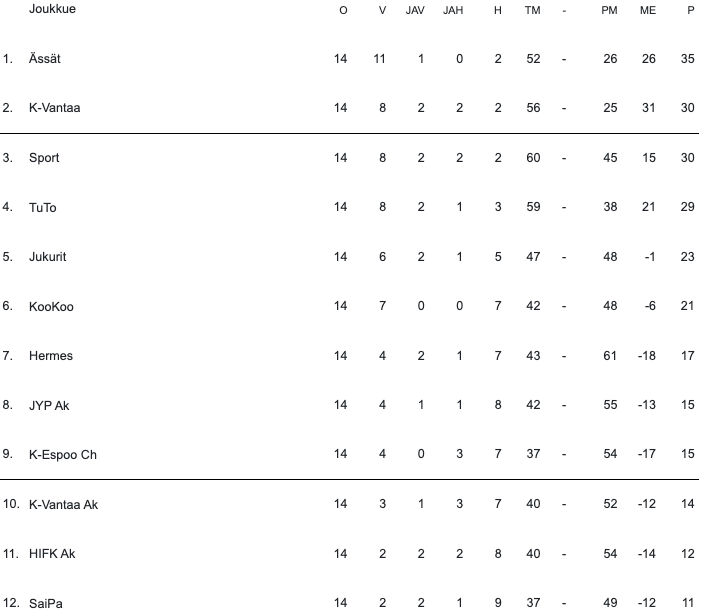 18:35 | HIFK Ak | – | K-Espoo Ch | |