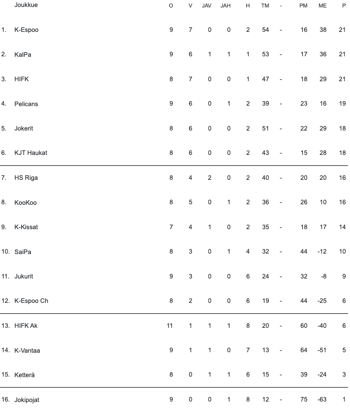 – Joukkueessa on työläs ja positiivinen ilmapiiri. Sitä pyrimme ylläpitämään joka viikko tästä eteenpäinkin. Ensi viikolla vieraspelit Tampereella ja Lahdessa, joissa pääsemme taas mittaamaan tasoamme.