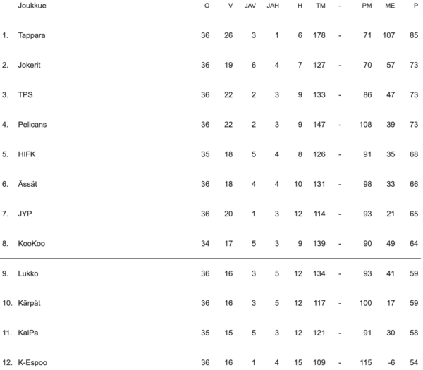 – Päättäväinen, yhtenäinen ja sitoutunut ryhmä matkasi Turkuun kohtaamaan Impivaarassa voittamattoman kotijoukkueen. Heti ensimmäisestä vaihdosta alkaen olimme valmiita ja nälkäisiä pelaamaan voitosta. Laadukkaan hyökkäyspelin sekä tiiviin viisikkopelaamisen ansiosta pisteet mukaan Helsinkiin. Illan highlight oli Matias Vanhasen ilmaveivi maali, päävalmentaja Tommi Railo iloitsee.