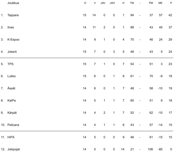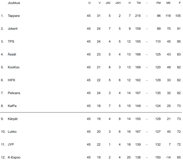 – Kaksijakoinen viikko, josta neljä pinnaa. Ensi viikolla vielä pari himamatsia ennen pleijareita, joissa voidaan varmistaa kotietu jatkopeleihin.
