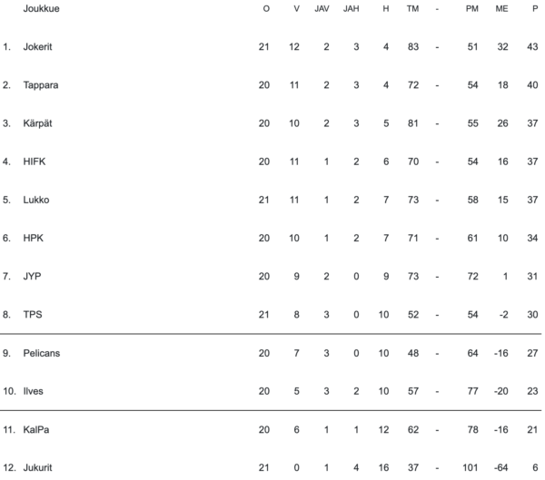 – Toisessa mentiin jo 4-1-johtoon, joskaan ei pelattu ihan omalla tasollamme. Loppujen lopuksi vähän erikoisten pomppujenkin kautta Jokerit tuli tasoihin. Vaikka pomppuja olikin niin tasoitus oli pelitilanteisiin nähden ansaittu. Rankkareilla pinnat jäivät Pirkkolaan.
