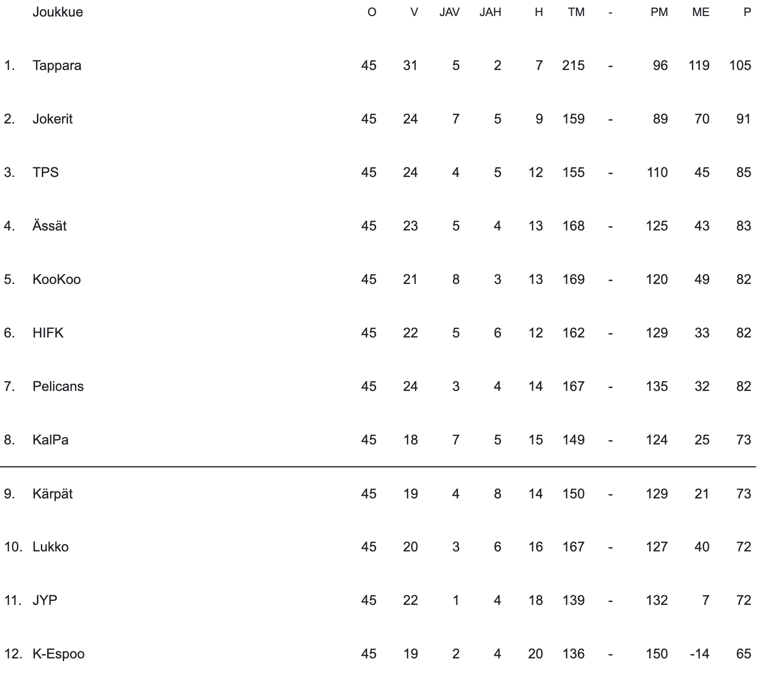 – Kaksijakoinen viikko, josta neljä pinnaa. Ensi viikolla vielä pari himamatsia ennen pleijareita, joissa voidaan varmistaa kotietu jatkopeleihin.