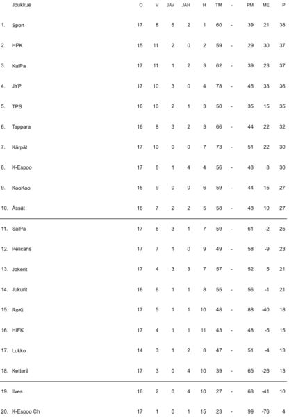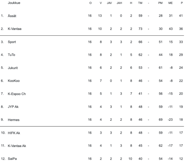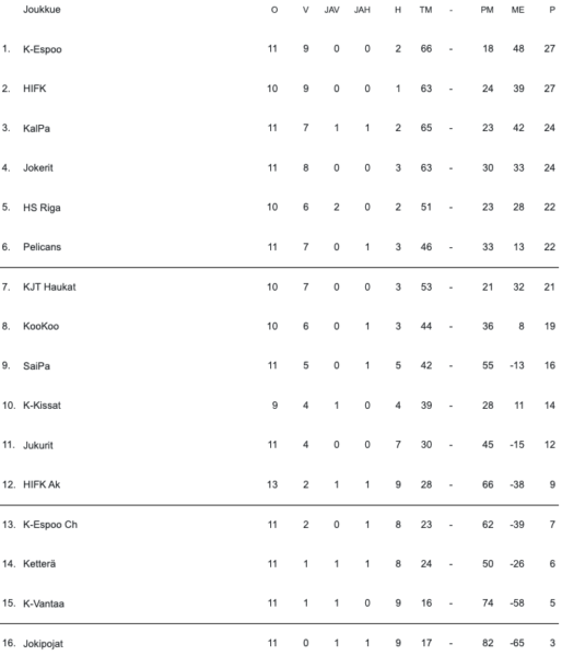 18:50 | K-Vantaa | – | HIFK Ak | |