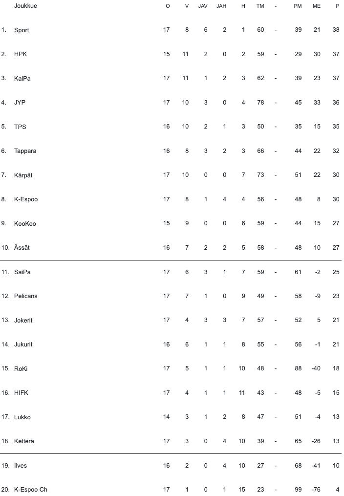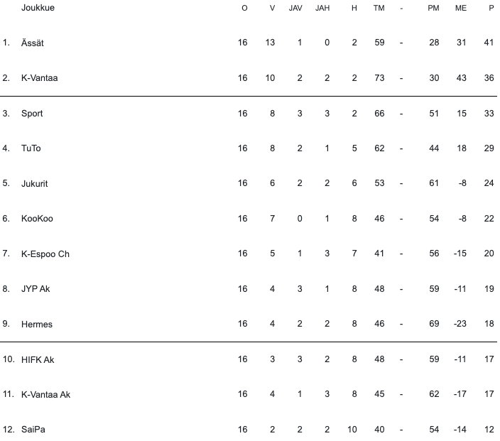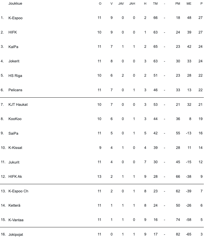 18:50 | K-Vantaa | – | HIFK Ak | |