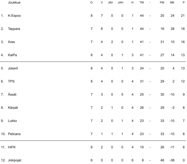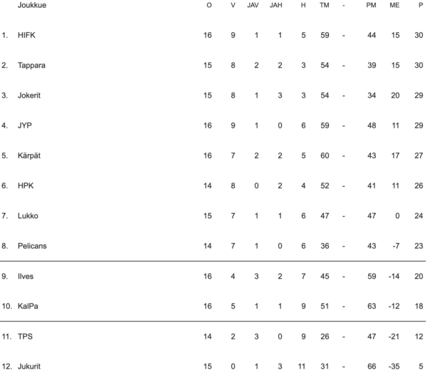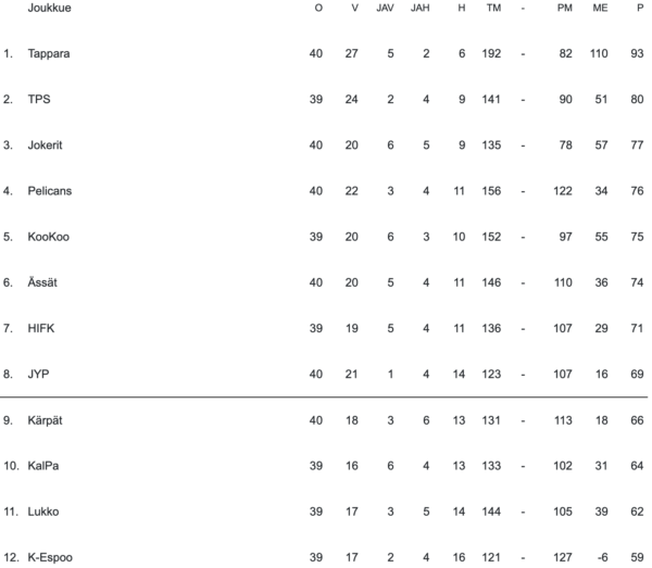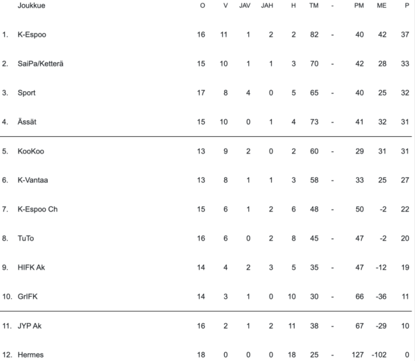 – Keskiviikkona kotona KooKoota vastaan oltiin vastaanottava osapuoli koko ottelun ajan. Vastustaja oli erittäin hyvä ja oli sinä päivänä joka osa-alueella meitä parempia, päävalmentaja Joni Töykkälä kommentoi.