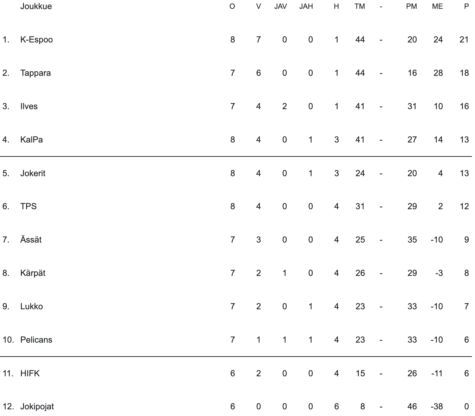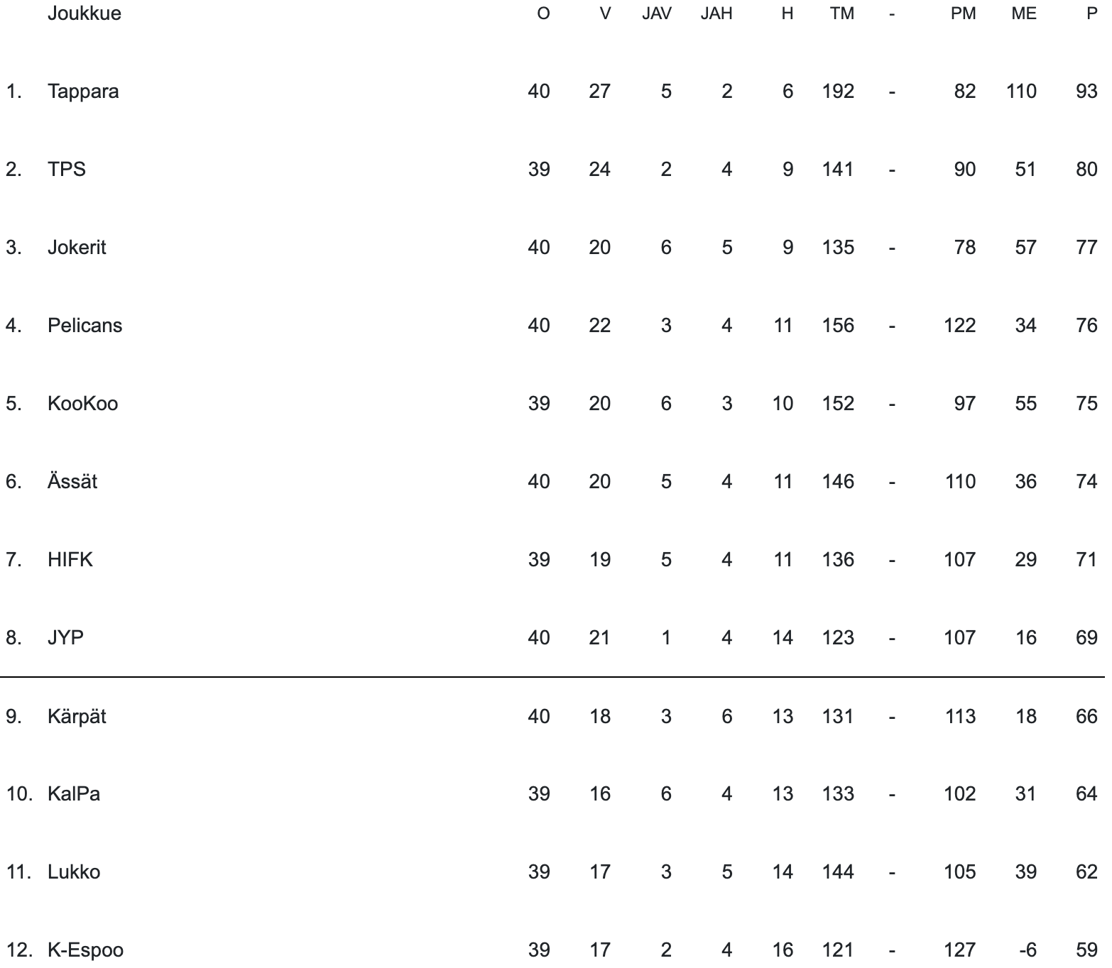 – Keskiviikkona kotona KooKoota vastaan oltiin vastaanottava osapuoli koko ottelun ajan. Vastustaja oli erittäin hyvä ja oli sinä päivänä joka osa-alueella meitä parempia, päävalmentaja Joni Töykkälä kommentoi.