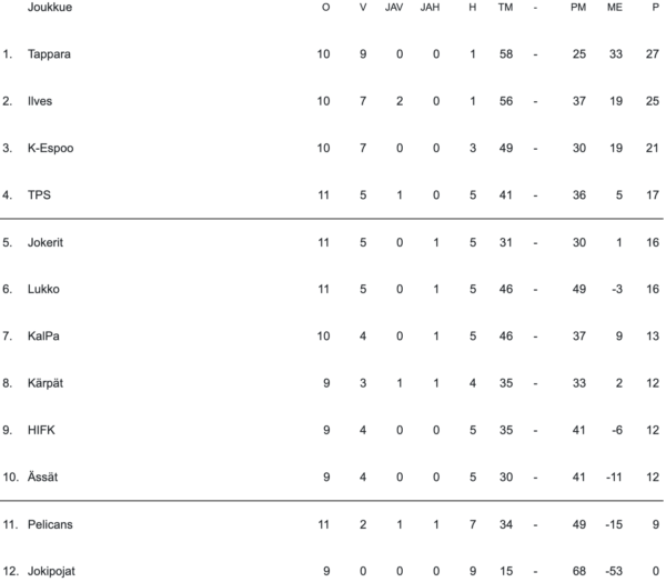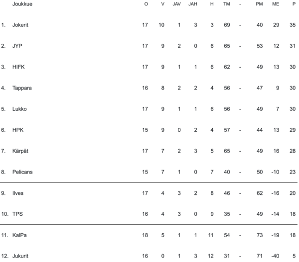 – Aika tasainen peli kaikkinensa ja vieraat olivat tuloksen verran parempia. Pelasimme omalla hyvällä tasollamme vain toisen erän ja sen ei pitäisikään riittää voittoon. Edellisen kerran menetettiin himassa pisteet lokakuun alussa, joten mielummin putki poikkesi nyt kuin myöhemmin ratkaisuotteluissa. Ensi viikollakin vain yksi peli, joten nyt on hyvin aikaa treenata itseämme taas paremmaksi, päävalmentaja Joni Petrell totetaa.