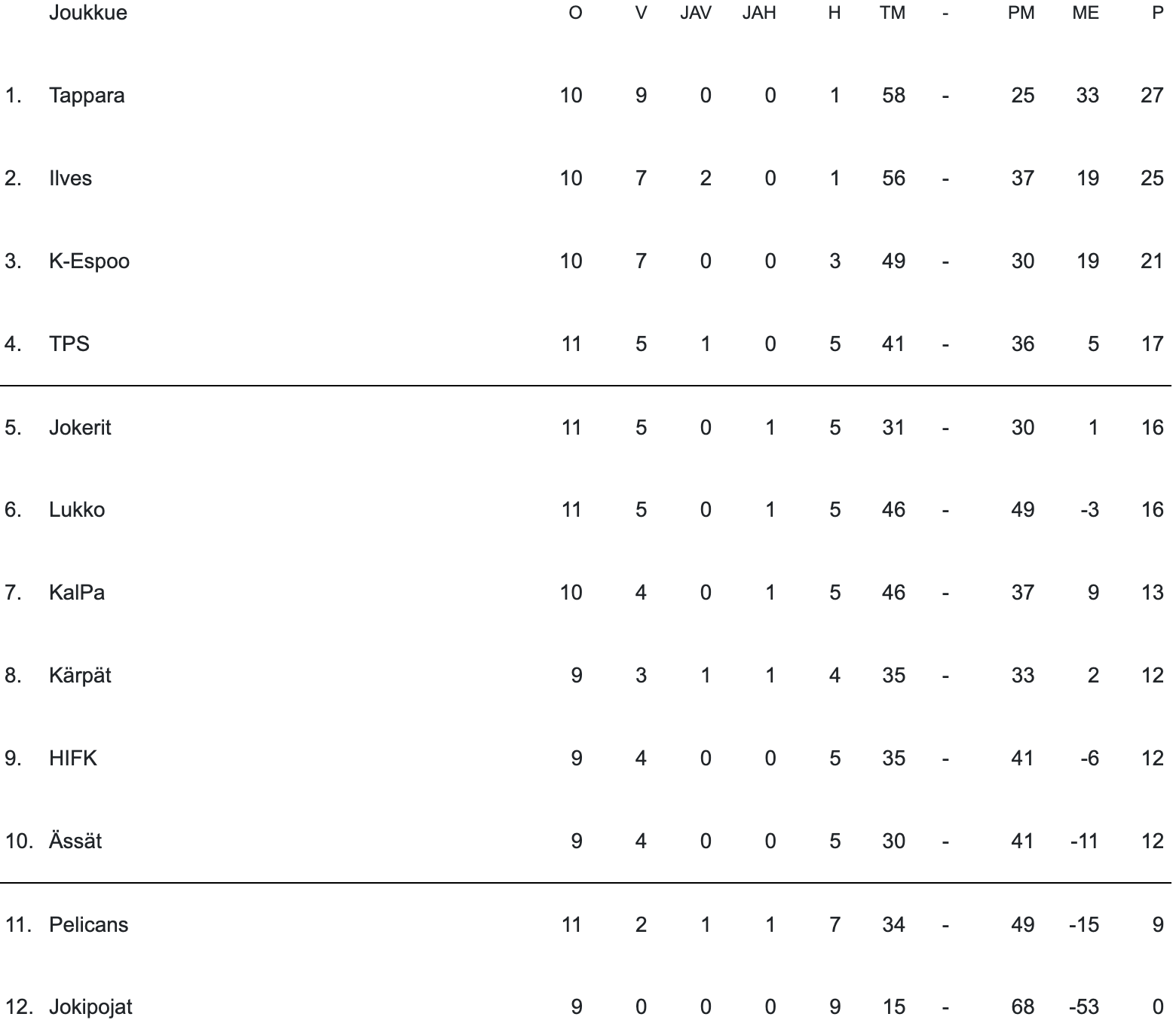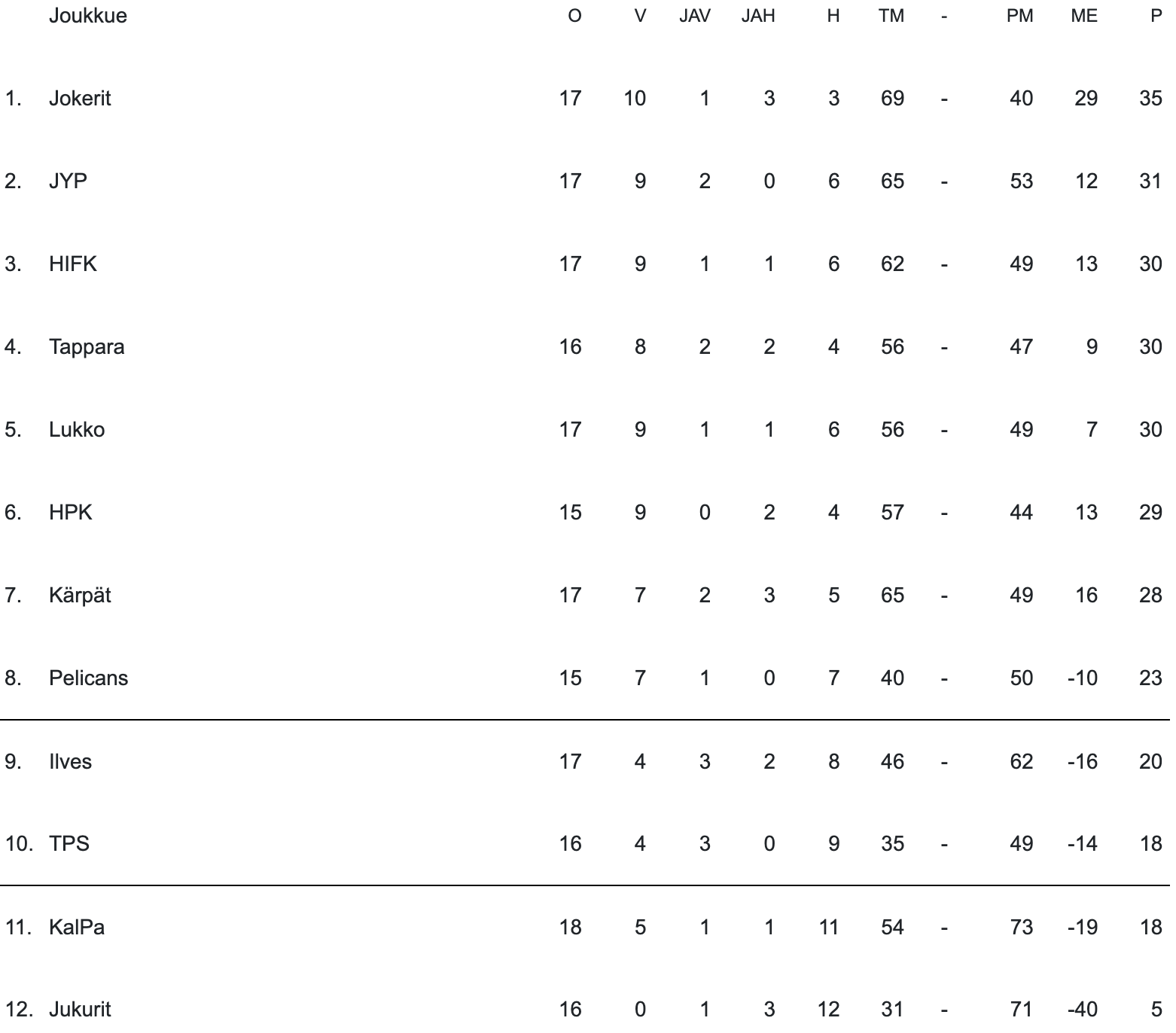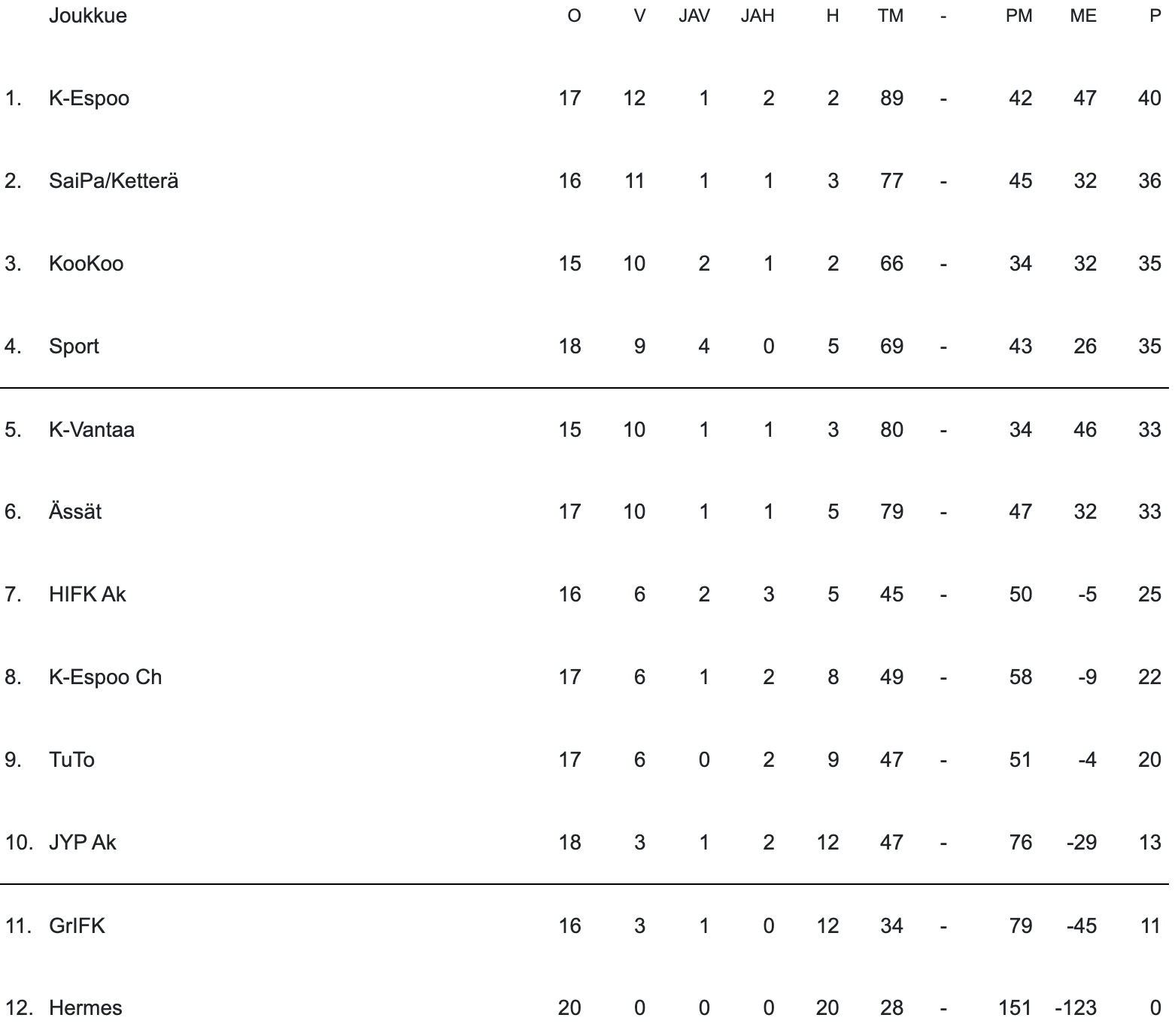 – Aika tasainen peli kaikkinensa ja vieraat olivat tuloksen verran parempia. Pelasimme omalla hyvällä tasollamme vain toisen erän ja sen ei pitäisikään riittää voittoon. Edellisen kerran menetettiin himassa pisteet lokakuun alussa, joten mielummin putki poikkesi nyt kuin myöhemmin ratkaisuotteluissa. Ensi viikollakin vain yksi peli, joten nyt on hyvin aikaa treenata itseämme taas paremmaksi, päävalmentaja Joni Petrell totetaa.