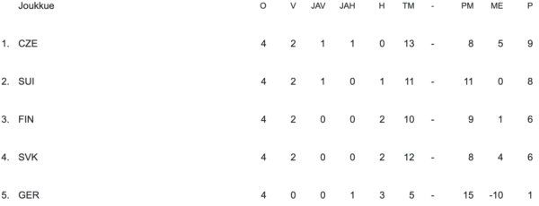 | CZE-FIN | 3–1 |