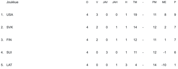 | USA-FIN | 6–2 |
