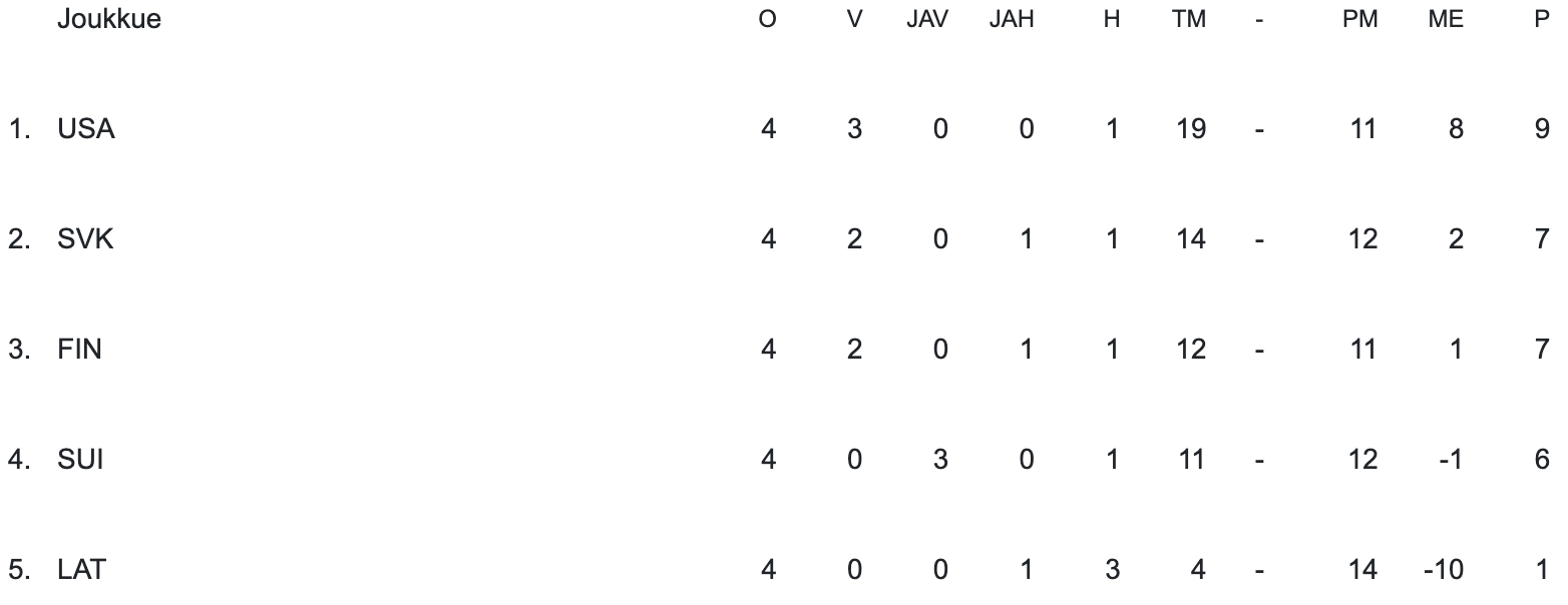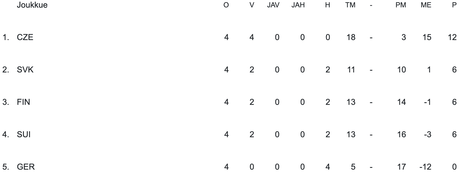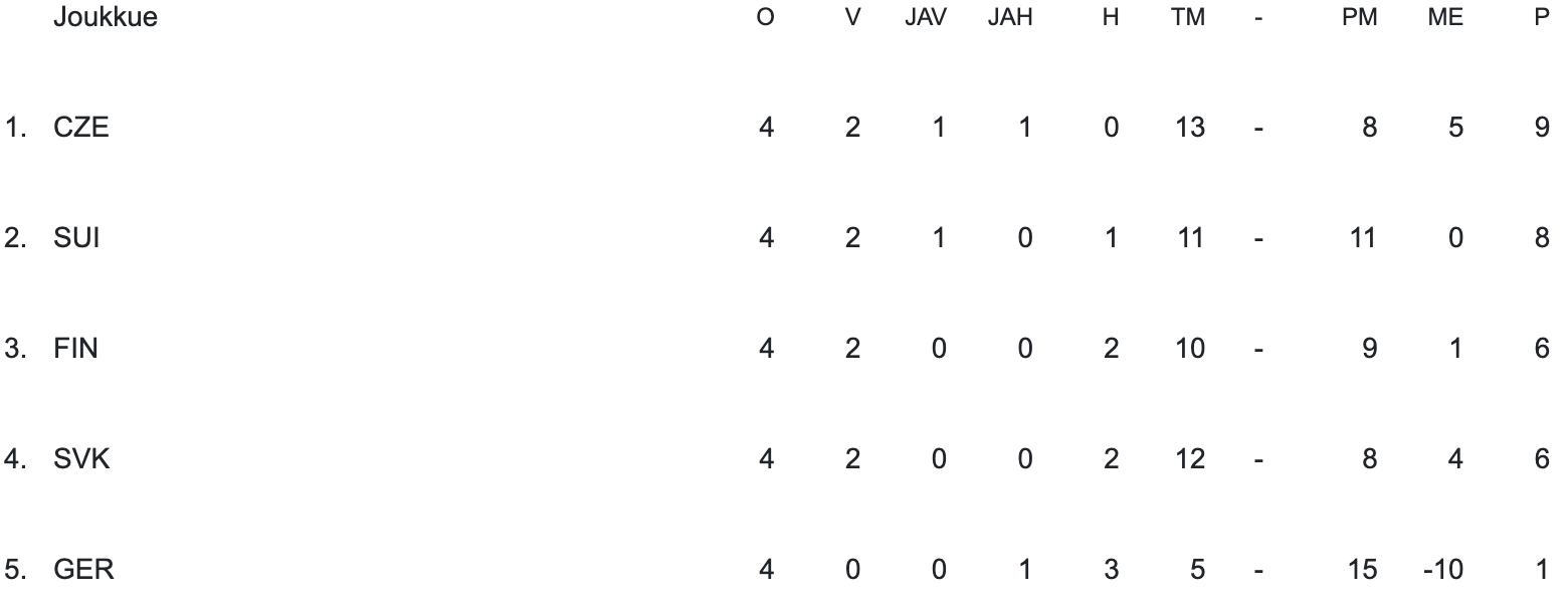 | FIN-SVK | 3–6 |